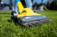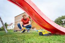 V malých zahradách lze FineCut 18V snadno použít jako sekačku na trávu pro sekání celého trávníku.