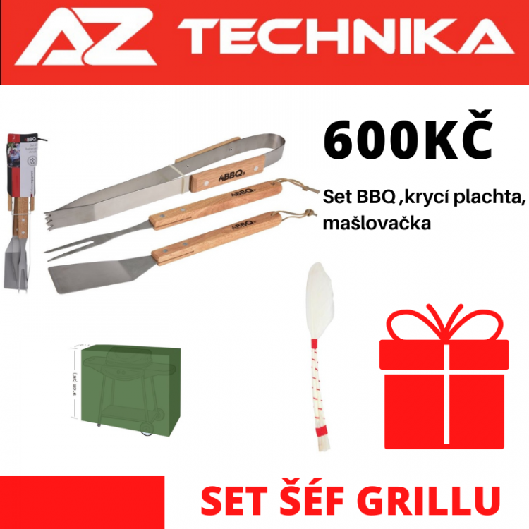 Sada ručního nerezového BBQ nářadí s dřevěnou rukojetí ,poctivá mašlovačka a plachta na ochranu grillu.