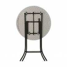 Vysoký barový kulatý stůl vhodný jak pro komerční účely tak do domácnosti, na zahradu, do dílny. Kombinace ocelové nosné kostry a vysoce odolného UV stabilizovaného polyetylenu (HDPE). Odolnost vůči vlivu počasí. Plast na slunci nežloutne ani nekřehne. Stůl je možné jednoduše složit.