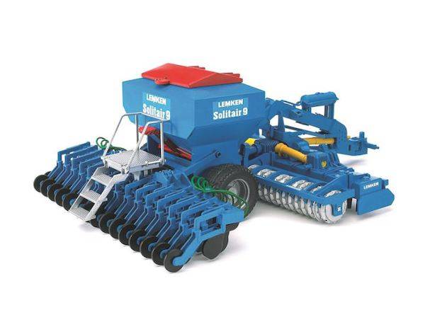 Dokonalý model secího stroje na obilniny LEMKEN Solitair. Do secího stroje můžete nasypat písek, nebo jiný sypký materiál a přepnutím páčky materiál vypadává ven. Naprosto dokonalé detailní provedení, měkké pneumatiky.