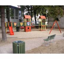 Krásná velká sestava se skluzavkou, dvěma lezecími stěnami, jedna kolmá je lezecí síť a druhá je plošina s lezecími kameny. Tělo sestavy je tvořené dvěma věžemi spojenými houpací lávkou. Dále se mohou děti houpat na houpačkovém přístavku se dvěma houpačkami, který je nedílnou součástí této sestavy. Za malý příplatek vám vyměníme houpačkový sedák za jinou houpačku např. houpačkový sedák pro malé děti nebo houpačkové sedáky jiné barvy. Tato úžasná velká sestava poskytne mnoho příležitostí ke hře dětí od 3 do 12 let. Výška podlahy herní sestavy je 1,5 m od země a proto je nutné v celé dopadové ploše vytvořit povrch tlumící pád z této výšky ( 30cm silná vrstva písku, kačírku nebo drcené kůry).