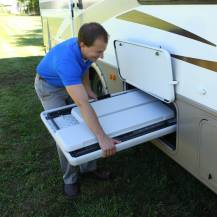 Skládací set campingového stolu a dvou lavic. Kombinace ocelové nosné kostry a vysoce odolného UV stabilizovaného polyetylenu (HDPE). Odolnost vůči vlivu počasí. Plast na slunci nežloutne ani nekřehne. Stůl i židle je možné jednoduše složit a židle připevnit na spodní stranu složeného stolu vše do jednoho setu.