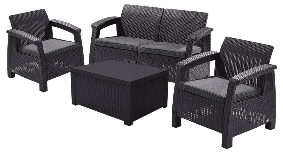 Corfu box je další set v oblíbeném designu Corfu. Jedná se o elegantní nábytek v imitaci přírodního ratanu, skládající se ze dvou křesel, dvojitého sofa a stolu, který zároveň slouží jako box! Produkt je dodáván s měkkými poduškami ve stylových barvách. Lehká a stabilní konstrukce nábytku se skvěle hodí do vnitřních i venkovních prostorů, jako je zahrada nebo terasa. Velmi snadná údržba a sestavení, navíc vysoce odolný materiál proti UV paprskům a povětrnostním vlivům.
