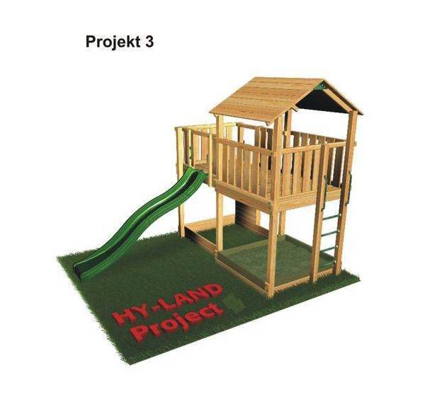 Sestava dvou věží se skluzavkou, která má jako nástupní plošinu šplhací stěnu opatřenou lezeckými kameny nebo klasický žebřík. Součástí sestavy je plastová skluzavka, kterou dodáváme jen v zelené barvě a je dlouhá 3 m, stálobarevný plast mrazuvzdorný, tato skluzavka je pevnější než standartně prodávané skluzavky pro privátní účely.