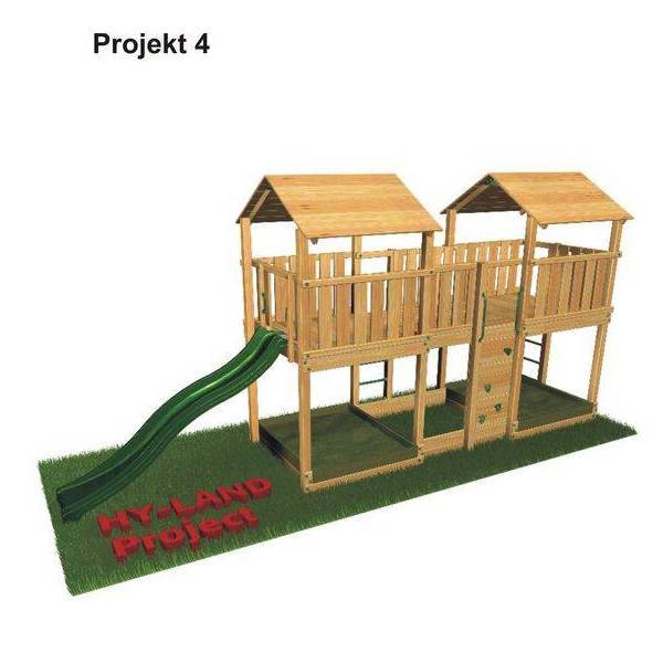 Sestava dvou věží se skluzavkou, která má jako nástupní plošinu šplhací stěnu opatřenou lezeckými kameny nebo dvakrát klasický žebřík. Součástí sestavy je plastová skluzavka, kterou dodáváme jen v zelené barvě a je dlouhá 3 m, stálobarevný plast mrazuvzdorný, tato skluzavka je pevnější než standartně prodávané skluzavky pro privátní účely.