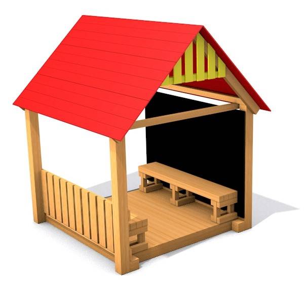 Základ konstrukce tvoří masivní dřevo ze severského smrku, ošetřené odolnou lazurou se složkou impregnace. Střecha z palubek poskytuje stín a ochranu, zatímco podlaha a dvě lavičky zajišťují pohodlí. Tabule je vyrobena z odolné vodovzdorné překližky a opatřena speciálním nátěrem vhodným pro křídu.
