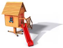 Obrázek k výrobku 21816 - Dětský domek se skluzavkou na kuří nožce .
