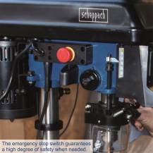 Stojanová vrtačka Scheppach DP 16 SL je výborně vybavený model vhodný hlavně pro náročné kutily, do dílen ap. Zásadní odlišností od ostatních modelů je křížový laser, který umožní velmi snadnou orientaci při vrtání a urychlí práci při vrtání větších sérií obrobků. Stroj má robustní konstrukci z odolné litiny, sklíčidlo 16 mm ve standardu, pět stupňů rychlosti pro práci s tvrdým a měkkým dřevem, kovy i plasty, svěrák pro přidržení obrobku na pracovním stole a silný motor 550 W, který si poradí s jakýmkoliv materiálem. Stroj samozřejmě splňuje poslední požadavky evropské unie na bezpečnost, jako je např. hlavní vypínač umístěný na čele stroje, průhledný kryt sklíčidla ap. Stroj je umístěn na stabilním podstavci s možností pevného uchycení šrouby k pracovní desce nebo podlaze.