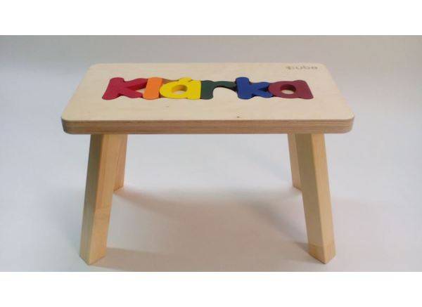 Stolička je zároveň i hračka, která rozvíjí dětské dovednosti. Děti si při skládání dřevěných písmenek procvičují jemnou motoriku a současně se naučí písmenka poznávat.