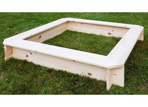 Dřevěné pískoviště bez krytu a bez povrchové úpravy. Rozměry 120x120cm