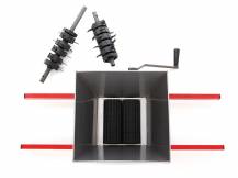 Drtič ovoce pro výrobu domácí šťávy či moštu, umožňuje jednoduchou přípravu hroznů, jablek, hrušek a dalšího ovoce k lisování a moštování. Drtič na ovoce je vybaven objemnou násypkou s kapacitou 15 l a s jeho pomocí tedy dokážete zpracovat až 200kg ovoce/hod. Drtič ovoce je dodáván s válci vhodnými pro drcení hroznů a jiných bobulovin a jako dárek navíc obdržíte také válce s noži, které Vám bez velké námahy umožní zpracovat také jablka, hrušky a dalšího ovoce. Rozměry drtiče: 85x55x34 cm.
