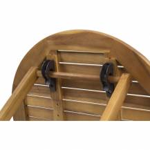 Praktická sestava nábytku, která nalezne své využití nejen na balkónech. Sestava se skládá ze dvou židlí 52 x 38 x 80 cm a kulatého stolku o průměru 60 cm. Pro pohodlné posezení obsahuje balení i polštáře sedáků a opěradel židlí. Všechny komponenty je možné snadno složit a minimalizovat tak nároky na jejich uskladnění.  Stůl i židle jsou vyrobeny z tropické dřeviny Akácie. Toto velice tvrdé dřevo bez problémů odolává i nepřízni povětrnostních vlivů.