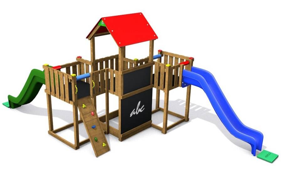 Moc pěkné dětské hřiště s dvěma kvalitními laminátovými skluzavkami vhodné pro mateřské školy, obce a restaurace. Sestava u dětí rozvíjí pohybovou aktivitu díky lezecím stěnám a skvělou zábavu zajistí dvě kreslící tabule. Dětské hřiště je určeno pro děti od 3 do 14 let, na děti od 3 do 6 let je nutný dohled dospělé osoby.