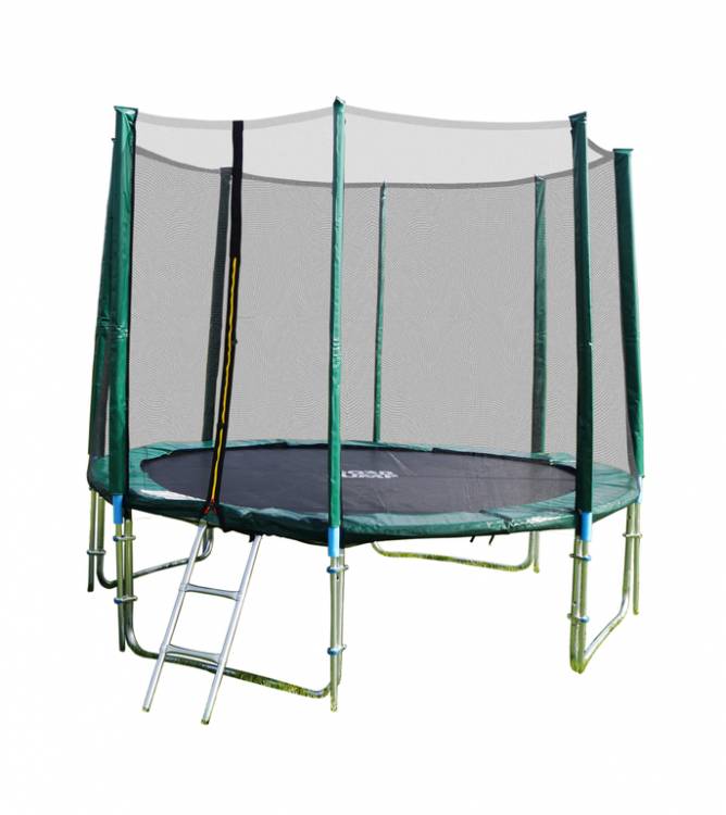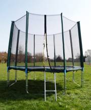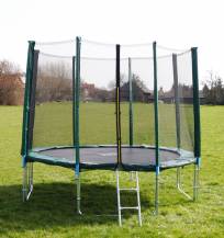 Zelená trampolína 305 cm s ochrannou sítí, žebříkem a navíc i krycí plachtou je kvalitní trampolína certifikovaná společností Intertek.
