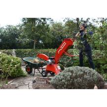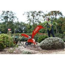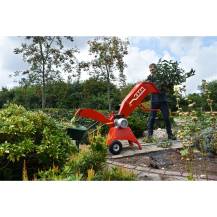 Robustní konstrukce stojí na pneumatických kolech, která spolu s madlem usnadňují přesun štěpkovače na požadované místo. Díky skládací funkci, která umožňuje zvednutí vstupu, je skladování snadné i v omezených prostorech. Výstupní část lze navíc snadno odejmout a uložit přímo do vstupní části, čímž se stroj stává ještě kompaktnějším.