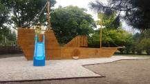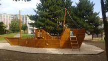 Pirátská loď má všechno co má mít. Nechybí kormidlo ani kapitánský můstek, pro ještě víc zábavy doporučujeme přidat laminátovou skluzavku, kterou si můžete vybrat v souvisejícím zboží. Skluzavka není součástí.