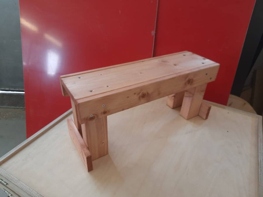 Lavička do dětského domečku z naimpregnovaného smrkového dřeva.