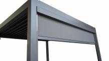 Pergolu lze vybavit stahovatelnými síťovými bočními roletami (příplatkové příslušenství), které poskytnou dodatečné zastínění a soukromí. Rolety lze snadno povytáhnout a zafixovat podle aktuálních potřeb. To vám umožňuje vytvořit si útulné prostředí i při větším slunečním žáru nebo v chladnějším počasí.