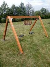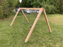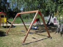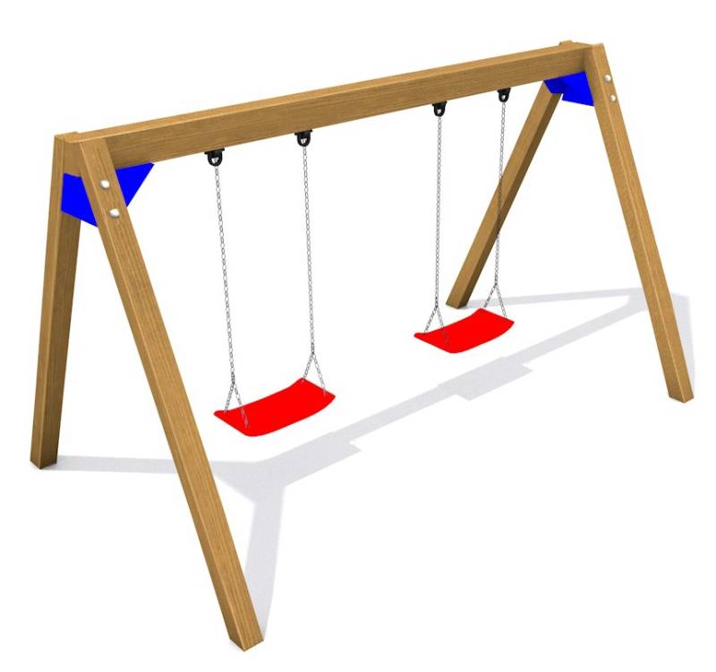 Houpačka Duoswing Mini je vyrobena z kvalitních lepených hranolů ze severského smrku. Pro prodloužení životnosti jsou dřevěné části ošetřeny dvojitým nátěrem lazurou v odstínu zlatý dub a kovové části žárovým pozinkem