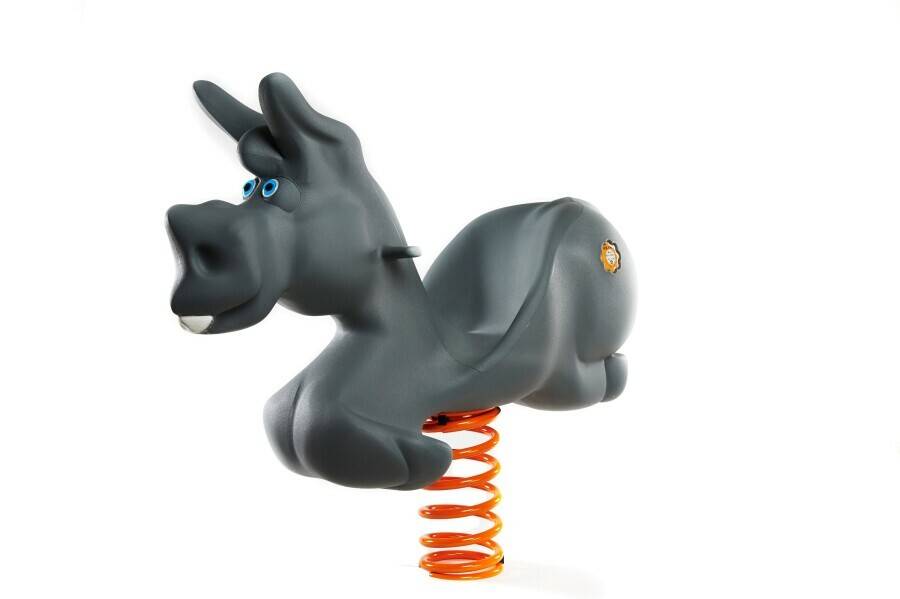 Houpačka je velmi robustní a zaručuje pohodlné a bezpečné houpání dítěte. Výška sedáku je 54 cm. Oslík je vyroben z velmi kvalitního trojrozměrného polyethylenu, který má vnitřní jádro tvořené kovovou výztuží. Materiál je stálobarevný, zdravotně nezávadný a recyklovatelný. Velmi dobře se udržuje, lze z něj odstranit i památky po spreyerech.
