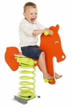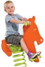 Krásná pružinová houpačka s veselým designem Koníka rozveselý každé hřiště. Je určena pro užívání v sedě pro děti od 3 do 12 let.