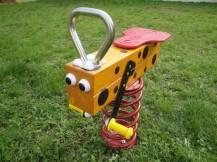 Krásná pružinová houpačka s veselým designem Broučka rozveselý každé hřiště. Je určena pro užívání v sedě pro děti od 3 do 10 let.