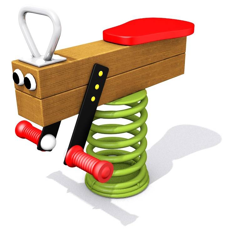Jednoduchá pružinová houpačka s veselým designem Koníka rozveselý každé hřiště. Je určena pro užívání v sedě pro děti od 3 do 10 let.
