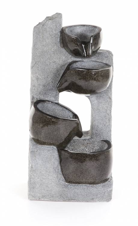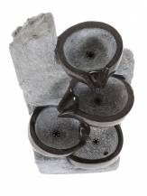 Zahradní fontána je vybavena kvalitní a velmi tichou vodní pumpou. Voda stéká po jednotlivých miskách, misky jsou prosvětleny LED osvětlením.