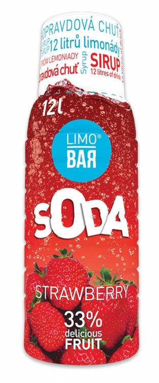 Lahodný jahodový sirup bez umělých barviv a přidaného cukru obsahující vysoký podíl ovocné složky (min. 33%). Sycená (perlivá) limonáda připravená z jahodového sirupu LIMO BAR připomíná oblíbené ovocné sodovky z bývalého Československa. Z 500 ml sirupu připravíte 12 litrů osvěžující jahodové limonády.