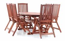Luxusní dřevěný zahradní nábytek MERANTI PARIS SET 6-ti polohovatelných křesel a rozkládacího stolu z exotického, velice trvanlivého a tvrdého dřeva meranti . Určeno do exteriérů, interiérů a pergolových prostor.
