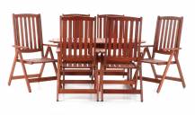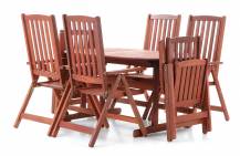 Nábytek MERANTI PARIS SET 6 - je vyroben z tmavě červeného meranti. Meranti je označení pro více druhů dřevin z rodu Shorea pocházejících z jihovýchodní Asie. Meranti je nejžádanějším ztropických materiálů na výrobu zahradního nábytku . Tato dřevina našla své uplatnění jak v interiéru pro svůj dekorativní vzhled (má unikátní červenohnědou barvu díky které na každém kusu nábytku dokonale vynikne kresba dřeva), ale především v exteriéru na výrobu zahradního nábytku, oken a dveří pro svoji vynikající trvanlivost, dlouhou životnost, vysokou tvrdost a dobrou opracovatelnost .