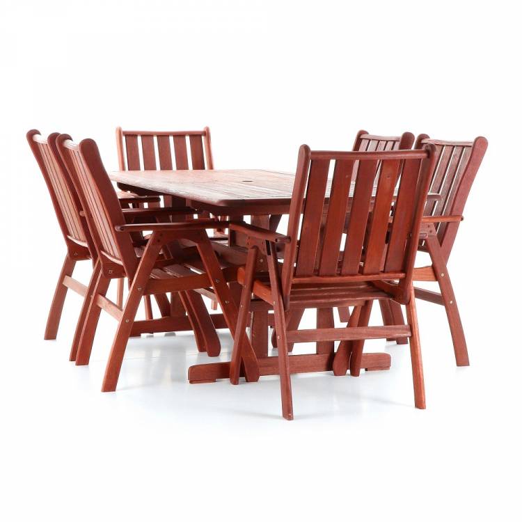 Luxusní masivní stolová sestava 6-ti křesel a stolu z exotického, velice trvanlivého a tvrdého dřeva meranti.