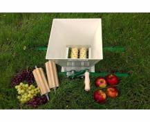 Mlýnek slouží k mačkání hroznů, Válce jsou vyměnitelné za válce s hroty na drcení jablek nebo hrušek a lze je použít také do elektrického drtiče nebo do drtiče na el. vrtačku.