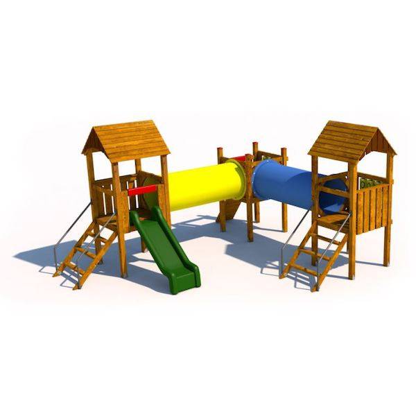 Pěkná menší dětská herní sestava vhodná pro MŠ, obce a restaurace, hotely nebo jako doplnění stávajícího hřiště.