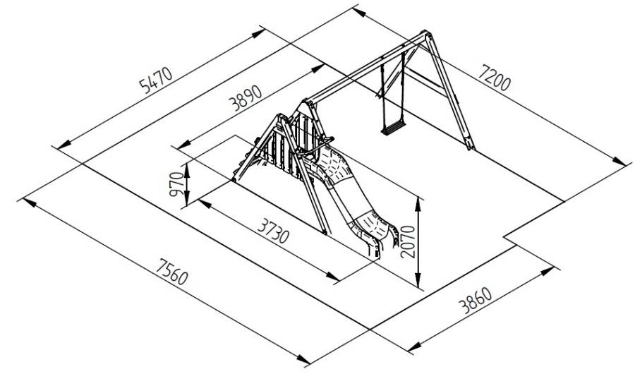 Sestava byla upravena tak, aby vyhovovala nové normě ČSN EN 1176 (volné prostory pro houpačku se nesmí křížit s volným prostorem skluzavky). Do prostoru mezi skluzavku a houpačku nelze umístit jiné zařízení např. lano, ohrožovalo by to bezpečnost dětí.