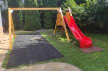 Jako vhodný tlumivý povrch doporučujeme dopadové desky Grass , které jsou jednoduché na instalaci i vlastní údržbu a zároveň chrání trávník pod hřištěm proti vyšlapání. Pro houpačku Single je zapotřebí min 14,4 m2 dopadové plochy.