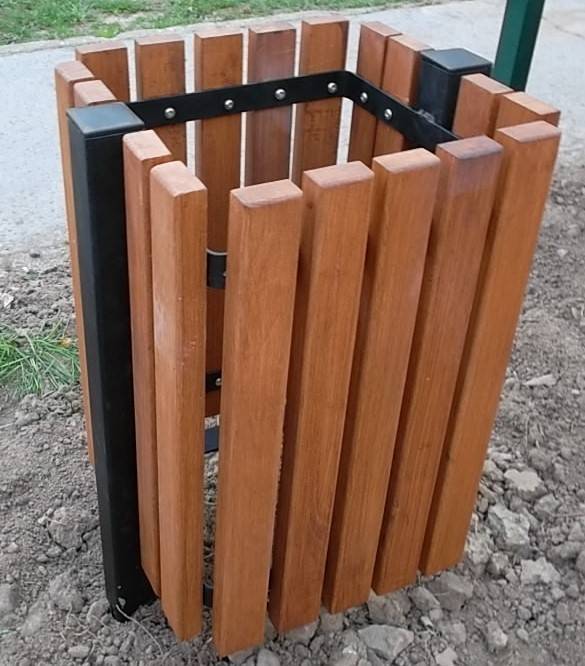 Masivní odpadkový koš vhodně doplní hřiště z akátu, a kvalitní  akátové dřevo zaručuje dlouhou životnost.