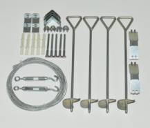 Kotvící systém Kotvící set obsahuje vše pro ukotvení vašeho skleníku k pevným základům nebo přímo do půdy. Ukotvit skleník můžete samozřejmě všemi obvyklými způsoby. Základna skleníků Palram to bez problémů umožňuje. Originální kotvící set Palram je možnost, jak skleník ukotvit rychle a bezpečně a jak ho spolehlivě ochránit i před silným větrem. Dá se rovněž použít v kombinaci s jiným způsobem ukotvení (např. přišroubování základny na betonové patky) jako dodatečná ochrana při očekávání vichřice apod. Výhodou je, že ukotvení skleníku zvládne každý během několika minut. Pro ukotvení k pevné podložce slouží kotevní "V" profily se šrouby a hmoždinkami, pro ukotvení do půdy slouží kolíky se šroubovicí.