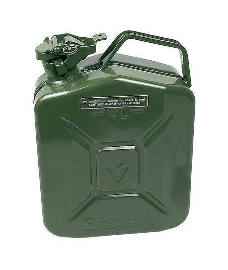 Plechový kanystr s klapkovým uzávěrem o objemu 5 litrů.Vhodné použití na benzin,naftu atd...