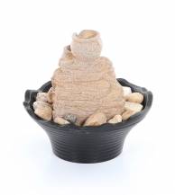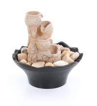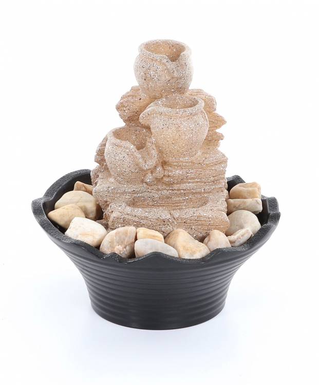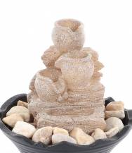 Pokojová fontána vyobrazující přelévající se džbánky s LED osvětlením bude rozhodně příjemnou oázou klidu, pohody ve Vašem bytě.
