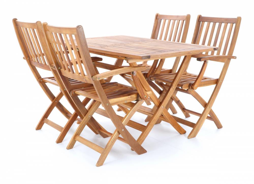 Dřevěná skládací sestava PRINCE VeGA 4 se skládá ze 4 skládacích křesel a obdelníkového stolu  z exotického, velice trvanlivého a tvrdého dřeva  Akácie . Není vhodné pro používání ve vlhkém prostředí bez použití vhodné impregnace.