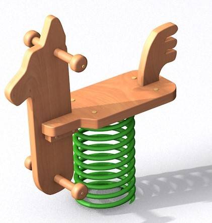 Tělo koníka je vyrobeno z masivního akátového dřeva, které je přirozeně odolné vůči povětrnosti, a navíc chráněné dvojitým nátěrem odolné lazury s impregnační složkou. Díky tomu si zachovává krásný vzhled i při intenzivním používání. Stabilní pohyb zajišťuje pružina z kvalitní pružinářské oceli, která je ukotvena pomocí betonovací kotvy – montáž je tak pevná a bezpečná.