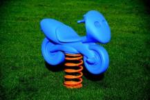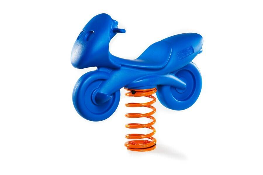 Houpačka Motorka - italská pružinová houpačka je tvořená z trojrozměrného polyethylenu, který má vnitřní jádro tvořené kovovou výztuží. Houpačka je velmi robustní a zaručuje pohodlné a bezpečné houpání dítěte. Výška sedáku je 54 cm. Materiál - polyethylen stálobarevný , zdravotně nezávadný a recyklovatelný (lze z něj odstranit i památky po spreyerech). Součástí balení je betonovací kotvení. Motorky nabízíme ve čtyřech barvách - červené, zelené, žluté a modré, uveďte prosím do poznámky na objednávce, kterou barvu jste si zvolili.