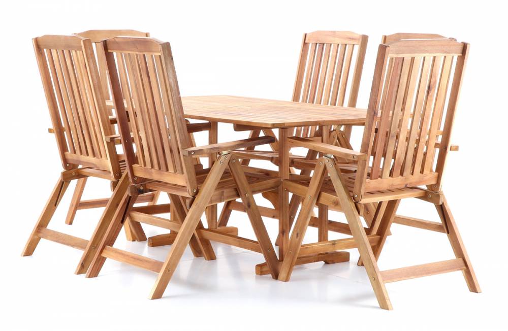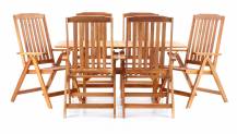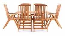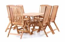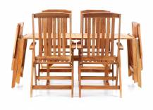 Luxusní dřevěný zahradní nábytek QUEEN VeGA 6 se skládá z 6-ti polohovatelných křesel  a obdelníkového stolu z exotického, velice trvanlivého a tvrdého dřeva  akácie .