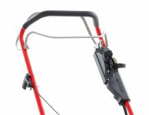 která je schopna prokluzu nože při naražení do pevné překážky. Tato funkce může eliminovat škody na sekačce způsobené nárazem nože do překážky. Ergonomická rukojeť s ovládacími prvky otáček motoru a speciální povlak na obvodu sběracího koše, který stimuluje proud vzduchu,