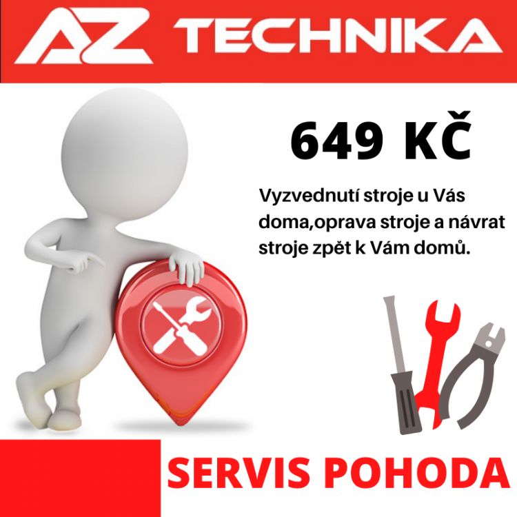 Tedy stroj si po nahlášení poruchy u Vás vyzvedne ZDARMA řidič, doveze stroj na autorizovaný servis, kde technik zjistí, zda se jedná o závadu záruční, či nikoliv. V případě záruční opravy bude stroj opraven a opět ZDARMA doručen k Vám domů. V opačném případě, kdy se nebude jednat o závadu, která spadá pod záruční podmínky výrobce, budete platit pouze cestu zpět a dohodnutou cenu nezáruční opravy při převzetí stroje u Vás doma.