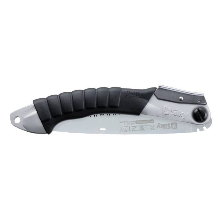Super Accel je vybaven unikátní 21 cm kalenou čepelí se zuby Silky Mirai-Me s hustotou osazení 7,5 zubů na 3 cm. Pilka se proto doslova zakousne do dřeva a drží pevně v řezu. Je tedy skvělým pomocníkem i při řezání ve výšce nad rameny nebo naopak nízko, v prostoru pod koleny. Pilku lze jednoduše složit a rozložit pomocí aretačního tlačítka, přičemž jsou dostupné dvě různé polohy řezání. S pomocí zářezu v čepeli jednoduše odklopit i v rukavicích.