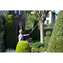 Prořezávejte stromy jako profesionál s pilou Zübat! Jedná se o lehkou teleskopickou tyčovou pilu, která se snadno používá a to mi v hustém porostu. Díky velkému řeznému výkonu budete schopni prořezávat stromy celý den bez náznaku větší únavy. V plně rozloženém stavu budete moci řezat větve až ve výšce kolem 5,5 metru. Čepel je navíc konstruována tak, aby zabírala primárně v tahu. Proto je ideální využít váhy kvalitního hliníkového těla a nechat pilu pracovat za Vás. Vlastnosti Dokonalý tvar agresivně zakřivené čepele o délce 330 mm osazené unikátními zuby pily Silky s hustotou 7,5 zubu na 3 cm Vám poskytne adekvátní řeznou rychlost, sílu a přesnost, kterou při prořezávání stromů potřebujete. Díky použití kvalitních ocelových slitin navíc zůstanou zuby dlouho ostré i při častém používání, přičemž stále zanechávají hladký řez. Velikou výhodou této teleskopické pily je zaměnitelnost pilových listů napříč celou řadou Zubat, a to jak u teleskopických, tak i malých jednoručních pil. Můžete si tak osadit pilu takovou čepelí, která bude zrovna nejvhodnější pro dané účely. Hliníková násada má oválný tvar, díky které máte velmi přesnou kontrolu nad směrem řezu, což budete potřebovat při prořezávání ve velké výšce. Navíc tento tvar poskytuje větší pevnost a tuhost po celé délce tyčové pily a minimalizuje ohýbání. Při plném rozložení násady pak pila dosahuje maximální délky 3,9 metru. V kompletně složeném stavu má pila naopak pouhých 2,35 m, což oceníte při jejím transportu. Dva zajišťovací mechanismy (tlačítka a páky) společně vytvářejí nejbezpečnější a nejstabilnější zajištění preferované délky násady, přičemž nejnižší část je opatřena gumou rukojetí pro pohodlné a bezpečné uchopení i za mokra.  Údržba pily Pro zachování účinnosti je nutné udržovat čepel v čistotě. Pokud je tedy ostří zalepeno pryskyřicí, či mízou, použijte k čištění olivový olej. Jedná se o účinný a ekologický způsob, jak rozpustit tyto nečisoty. Pokud pilu déle nepoužíváte, dbejte na to, aby byla vždy suchá. Praktické příslušentví  Volitelně lze pilu osadit hákem HookFox, který se připevňuje pod čepel. S tímto hákem snadno ze stromu stáhnete uřezané větve, které se zakly v koruně. Lze ho navíc prakticky využít pro vytažení horolezeckého lana vysoko na strom.     Případné bezpečnostní pokyny, výstrahy a upozornění jsou součástí návodu k obsluze. Kontaktní údaje výrobce / dovozce / zplnomocněného zástupce výrobce v EU: De Wild B.V. Spectrum 38, 4706 NM Roosendaal, Netherlands email: support@silky-europe.com