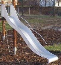Tato nerezová skluzavka lze připojit k většině dětských hracích sestav s výškou podesty 2 m. Skluzavka má v horní části přírubu s otvory pro šrouby ve tvaru U, stejně jako námi nabízené laminátové skluzavky. Na vyžádání lze objednat skluzavku s uchycením jen do podesty, toto je třeba uvést do poznámky v objednávce. Součástí skluzavky je i betonovací kotvení do terénu.
