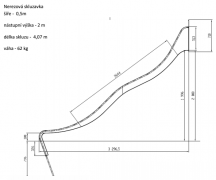 Skluzavka je vyrobena z jednoho kusu 2 mm silného nerezového plechu.